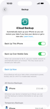 Press the indicator next to "Back Up Over Mobile Data" to turn the function on or off.