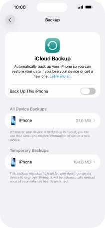Press the indicator next to "Back Up This iPhone" to turn on the function.