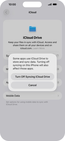If you turn off the function, press Turn Off Syncing iCloud Drive.