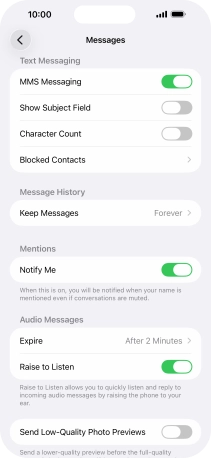 Press the indicator next to "MMS Messaging" to turn on the function.