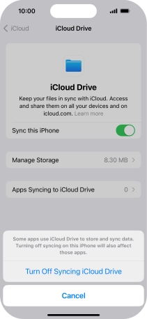 If you turn off the function, press Turn Off Syncing iCloud Drive.