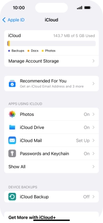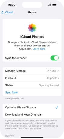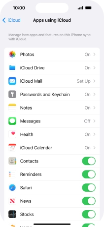 Press the indicators next to the required data types to turn synchronisation of each data type on or off.