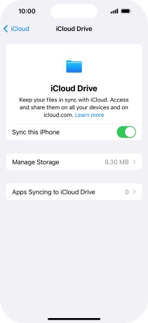 Press the indicator next to "Sync this iPhone" to turn file synchronisation on or off.