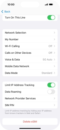 Press Delete eSIM and follow the instructions on the screen to delete your eSIM.