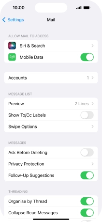 Press the required email account and follow the instructions on the screen to select settings for the specific account.