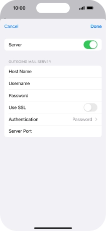Press Host Name and key in the name of your email provider's outgoing server.
