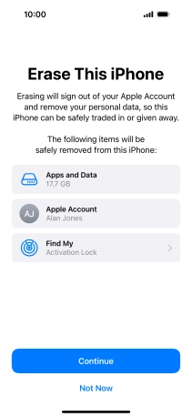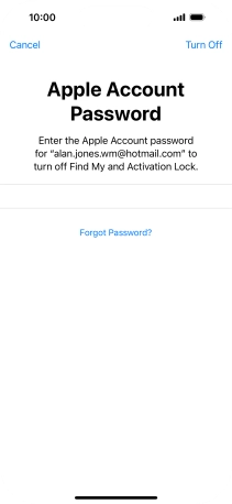 Key in the password for your Apple ID and press Turn Off. Wait a moment while the factory default settings are restored. Follow the instructions on the screen to set up your phone and prepare it for use.