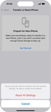 Press Reset All Settings. Wait a moment while the factory default settings are restored. Follow the instructions on the screen to set up your phone and prepare it for use.