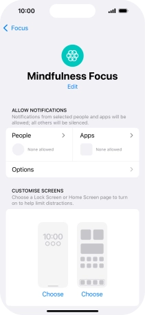 Press Apps and follow the instructions on the screen to select which apps you would like to receive notifications from when the selected focus mode is active.