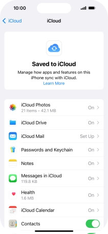 Synchronise the contents of your Apple iPhone 15 iOS 18 using iCloud