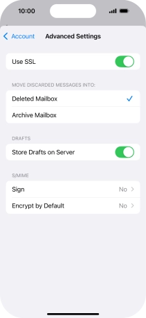 Press the required email account and follow the instructions on the screen to select settings for the specific account.