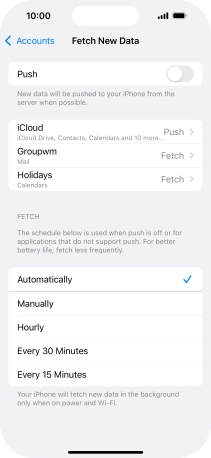 Press the required email account and follow the instructions on the screen to select settings for the specific account.