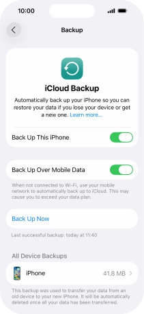 Press the indicator next to "Back Up Over Mobile Data" to turn the function on or off.