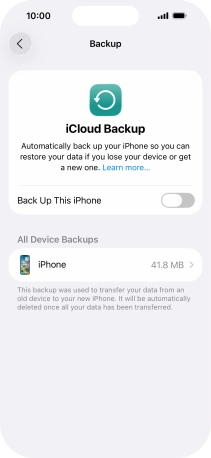 Press the indicator next to "Back Up This iPhone" to turn on the function.