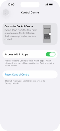 Select settings for Control Centre on your Apple iPhone 15 iOS 26