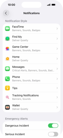 Press the indicator next to "Allow Notifications" to turn notifications for the selected application on or off.