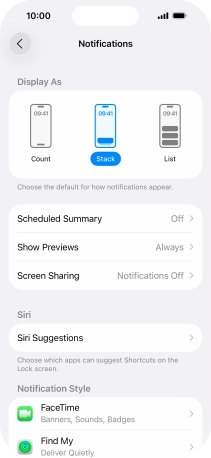 To select notification preview on the lock screen, press Always.