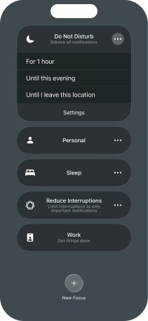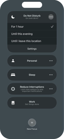 You can set your phone to activate the selected focus mode for a specified period of time, at a specific location or while using a specific app.