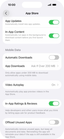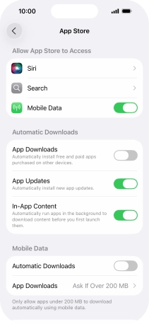 Press the indicator next to "App Downloads" to turn the function on or off.