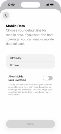 Press the indicator next to "Allow Mobile Data Switching" to turn the function on or off.
