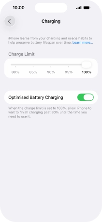 Press the indicator next to "Optimised Battery Charging" to turn the function on or off.