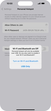 If Wi-Fi is turned on, press Wi-Fi and USB Only.