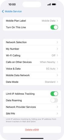 3. Turn automatic selection of price plan for mobile data on or off