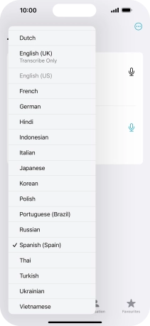 To translate speech, press the microphone icon and say the required word or sentence.