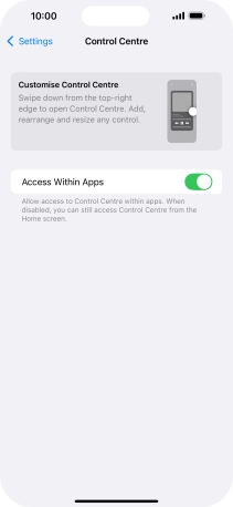 Using Control Centre, you can get quick access to selected functions on your phone.