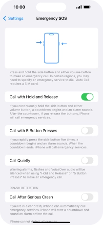 Press the indicator next to "Call After Serious Crash" to turn on the function.