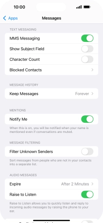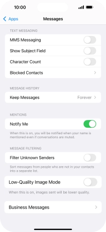 Press the indicator next to "MMS Messaging" to turn on the function.