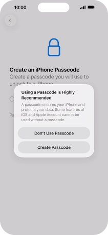 Follow the instructions on the screen to turn on use of phone lock code or press Don't Use Passcode.