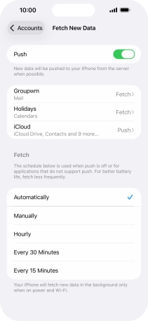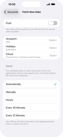 Press the required email account and follow the instructions on the screen to select settings for the specific account.