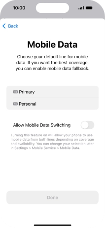 Press the indicator next to "Allow Mobile Data Switching" to turn the function on or off.