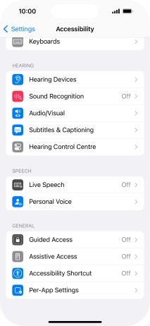 It is possible to select more accessibility settings, you can, e.g., turn the accessibility shortcut on or off, set up Guided Access and set up accessibility functions for certain apps.