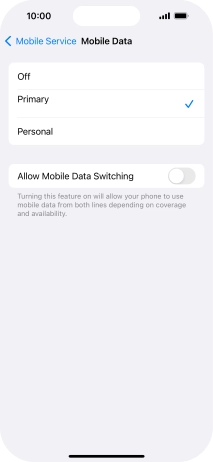 Press the indicator next to "Allow Mobile Data Switching" to turn the function on or off.