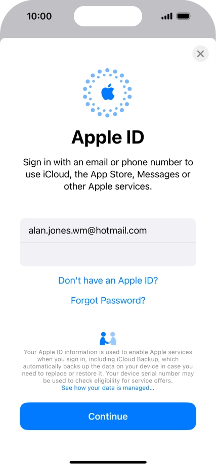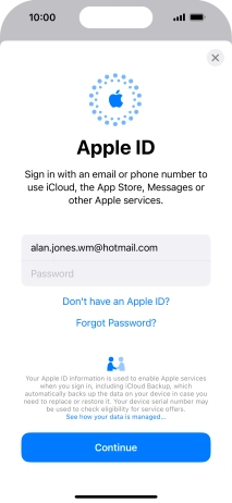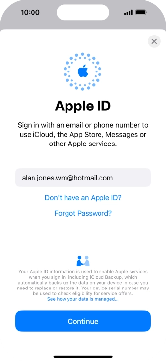 If you don t have an Apple ID, press Don't have an Apple ID? and follow the instructions on the screen to create an Apple ID.