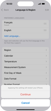 To subsequently select another language as the default language, press the move icon next to the required language and drag it to the top of the list.