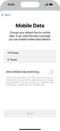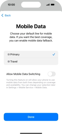 Press the indicator next to "Allow Mobile Data Switching" to turn the function on or off.