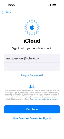 When this screen is displayed, your phone is ready to restore content from an iCloud backup.