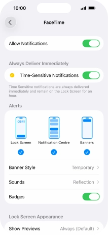 To select notification preview on the lock screen, press Always.