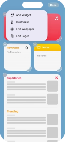 Press and hold the required widget until a pop-up menu is displayed.