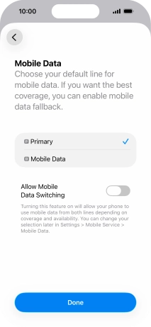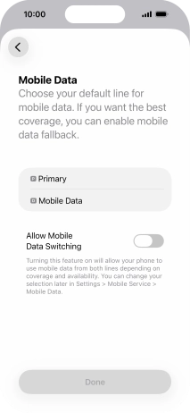 Press the indicator next to "Allow Mobile Data Switching" to turn the function on or off.