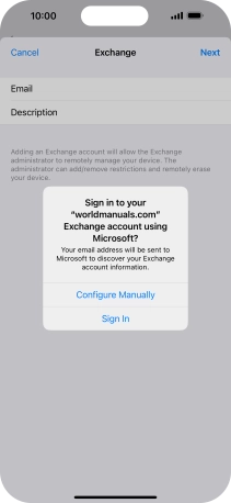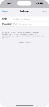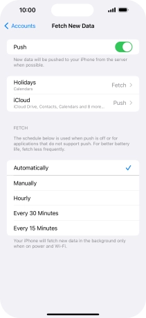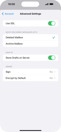 Press the required email account and follow the instructions on the screen to select settings for the specific account.