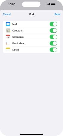 Press the indicators next to the required data types to turn synchronisation of each data type on or off.