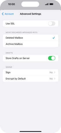 Press the indicator next to "Use SSL" to turn the function on or off.