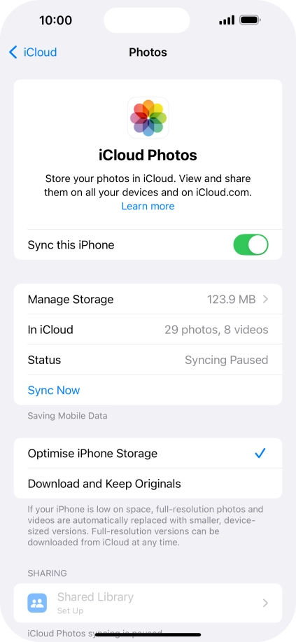 Press the indicator next to "Sync this iPhone" to turn file synchronisation on or off.