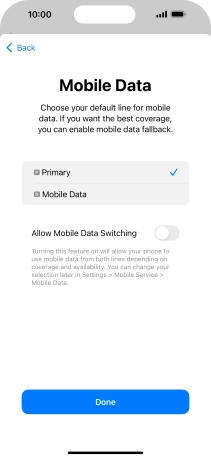 Press the indicator next to "Allow Mobile Data Switching" to turn the function on or off.