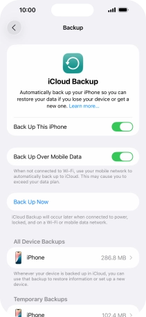 Press the indicator next to "Back Up Over Mobile Data" to turn the function on or off.
