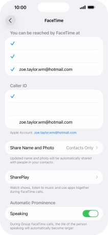 You can select the email addresses and phone numbers others can use to contact you using FaceTime.